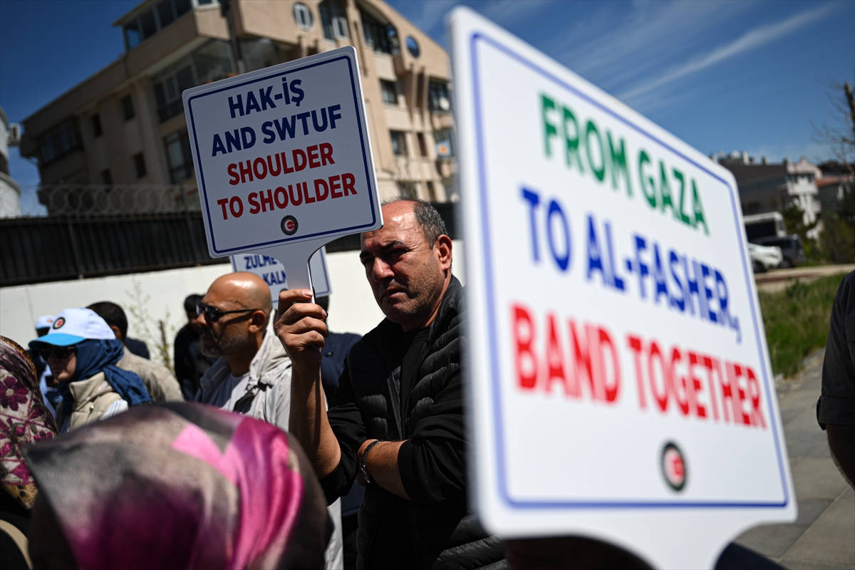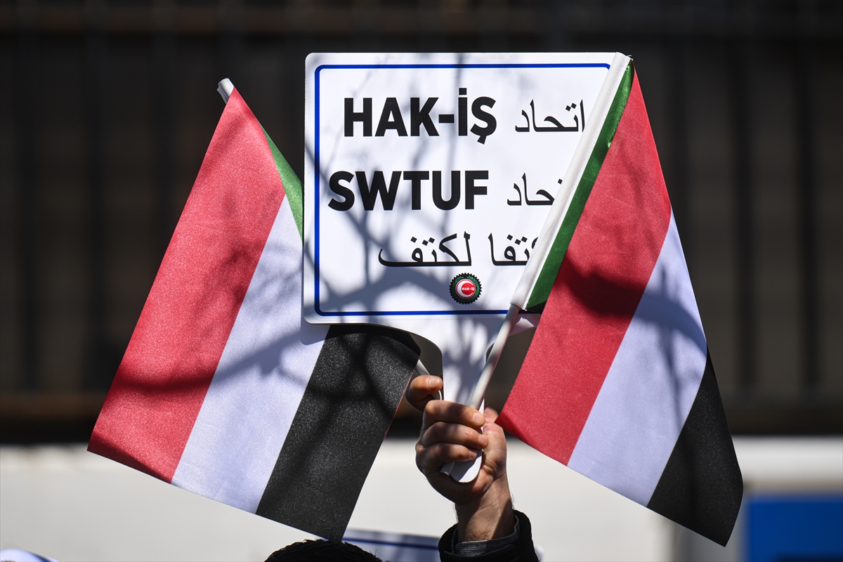 HAK-İŞ ve Sudan İşçi Sendikaları Konfederasyonu (SWTUF) üyeleri, Sudan'a yönelik dış müdahaleleri protesto etti. HAK-İŞ Genel Başkanı Mahmut Arslan, açıklamalarda bulundu.