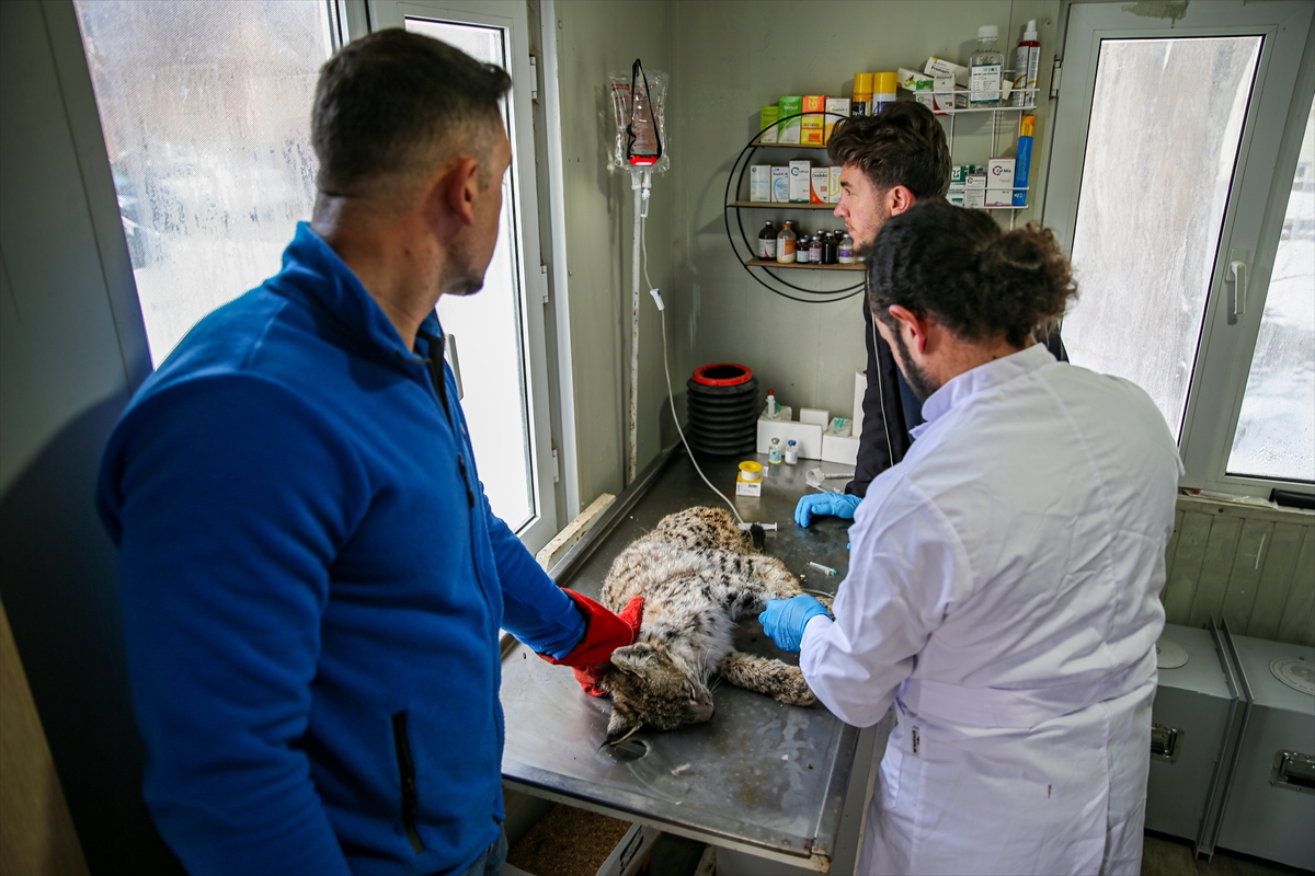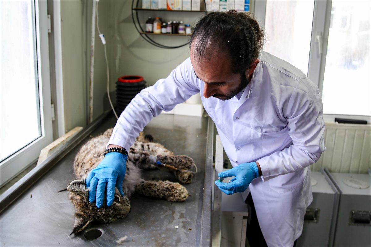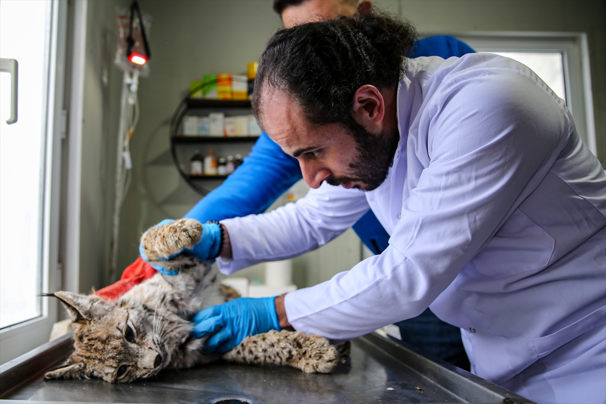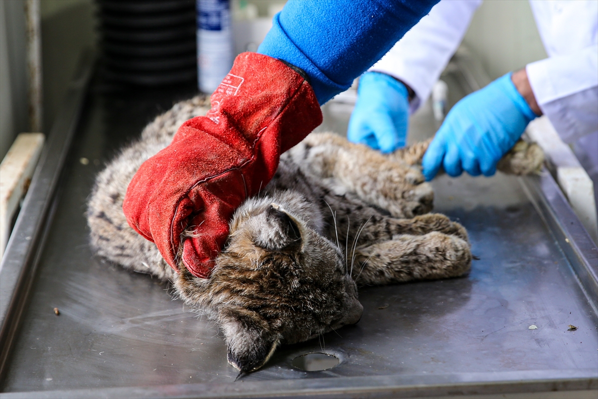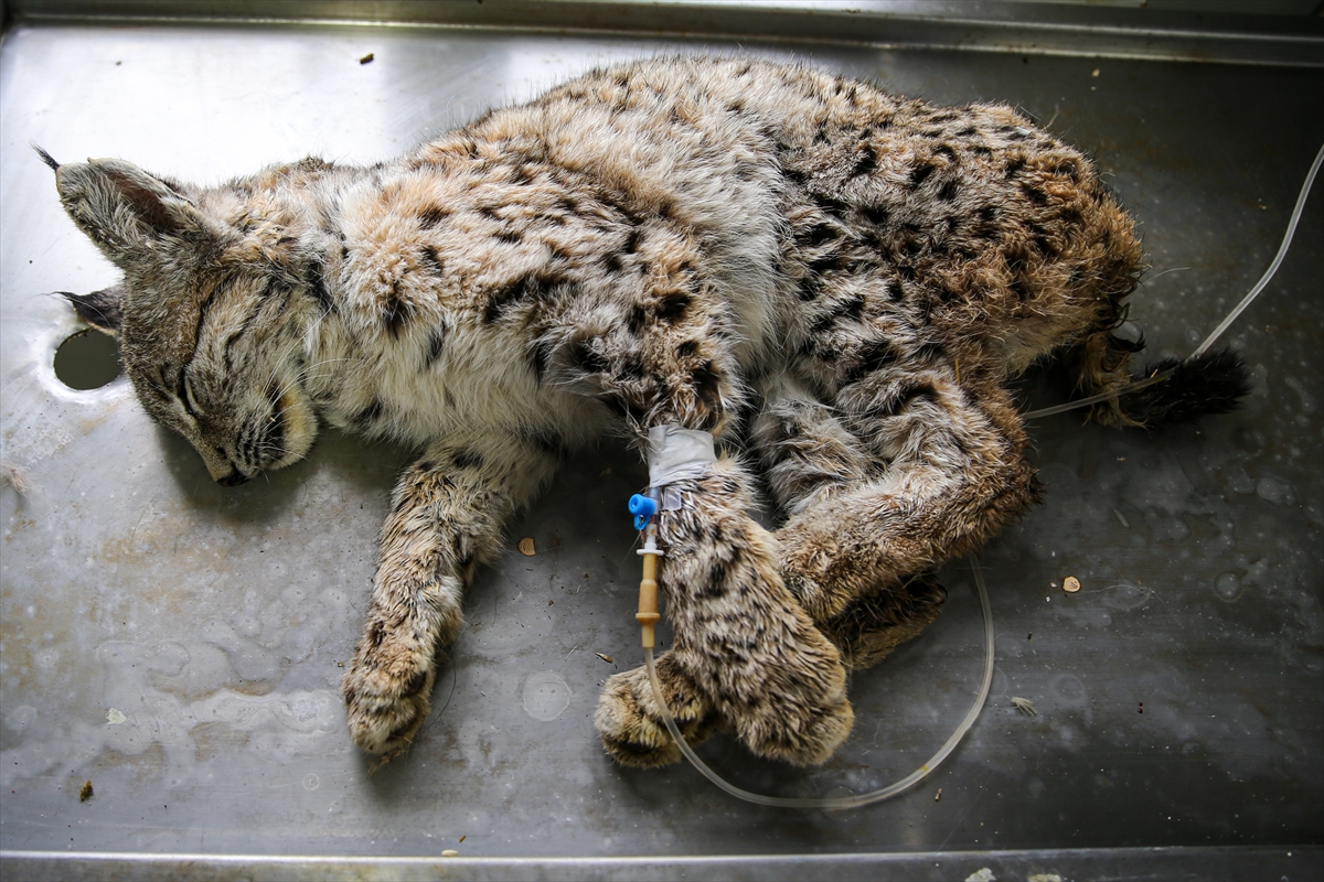 Erzurum'da jandarma ekiplerince bitkin halde bulunan nesli tükenme tehlikesi altındaki vaşak, tedavi altına alındı.