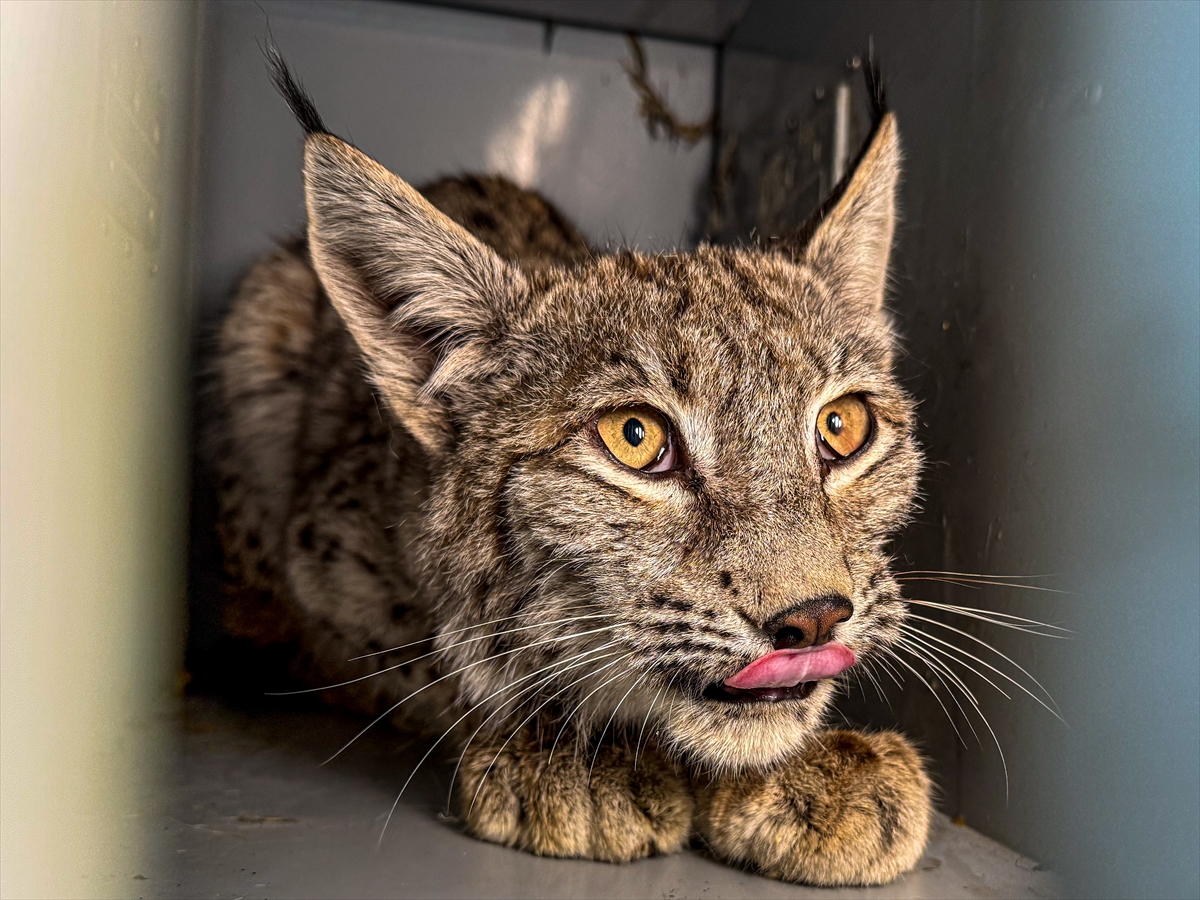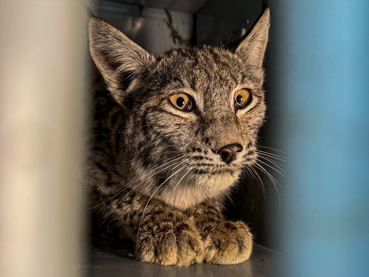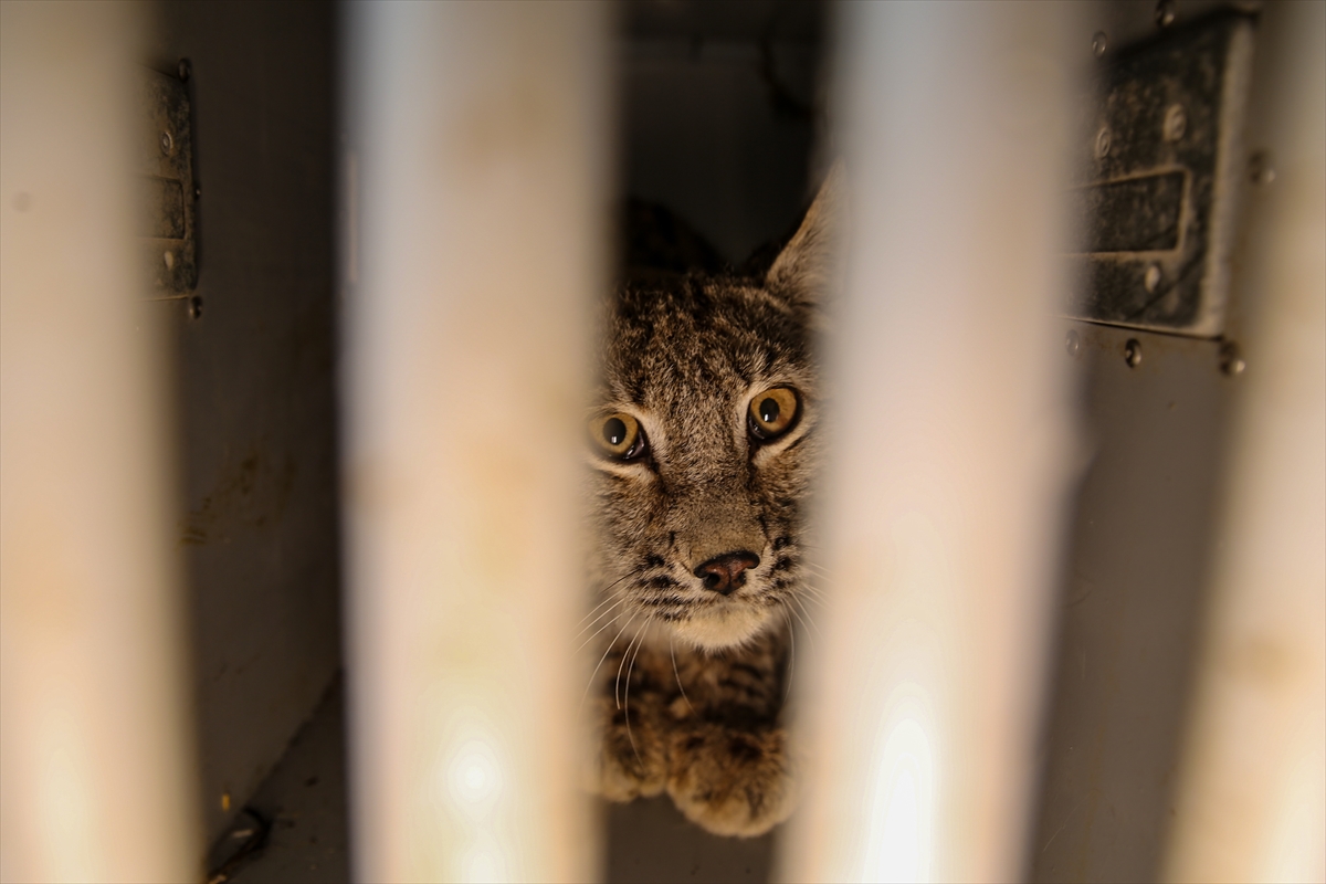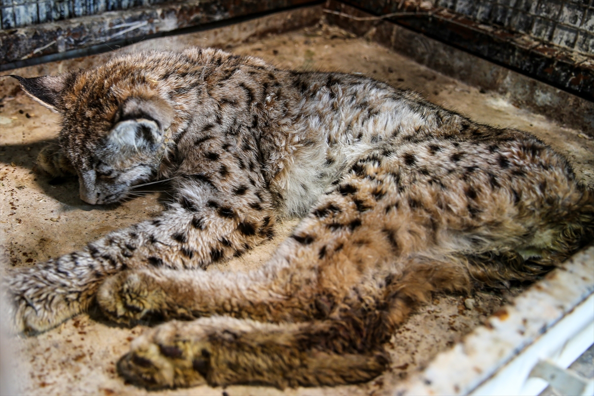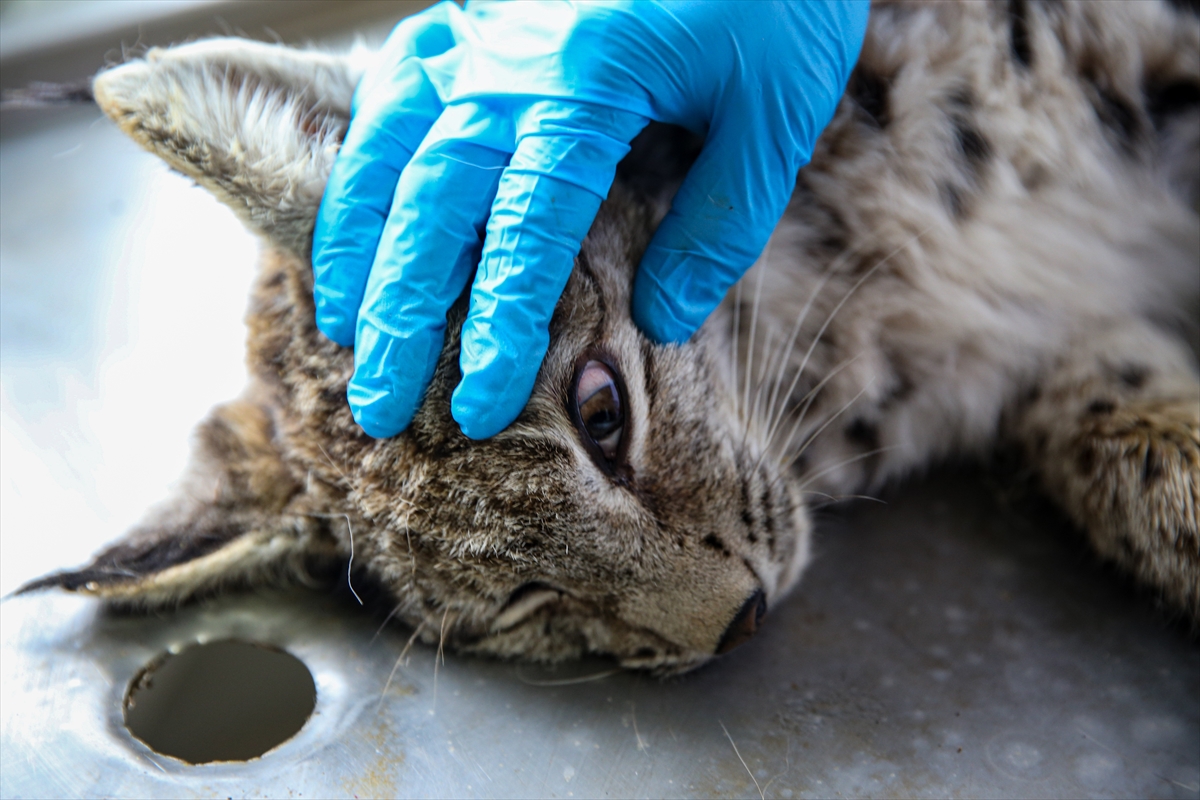 Erzurum'da jandarma ekiplerince bitkin halde bulunan nesli tükenme tehlikesi altındaki vaşak, tedavi altına alındı.