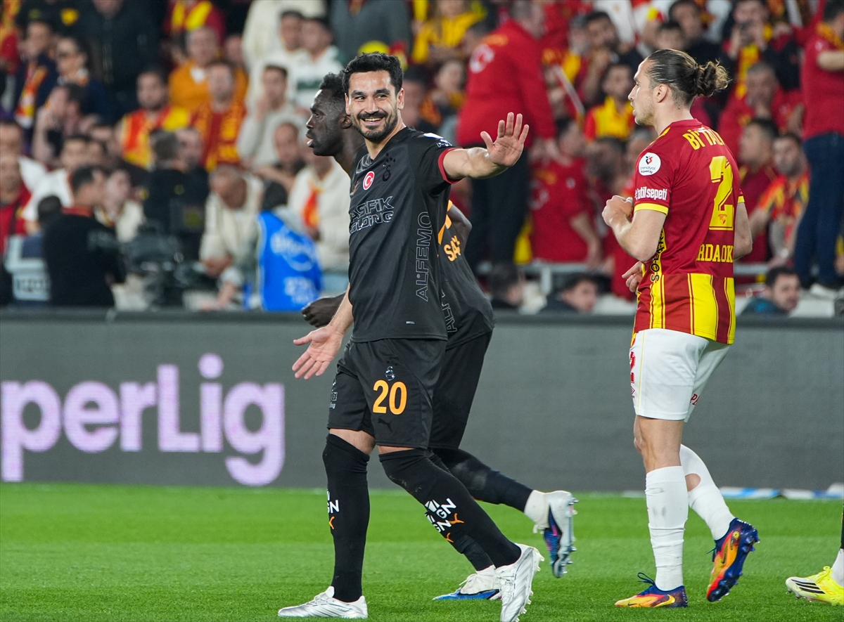 Trendyol Süper Lig’in 27. hafta erteleme maçında Göztepe ile Galatasaray, ISONEM Park Gürsel Aksel Stadı’nda karşılaştı. Galatasaray oyuncusu İlkay Gündoğan (20), attığı gol sonrası sevinç yaşadı.