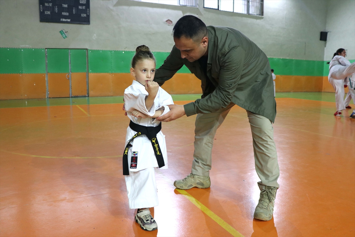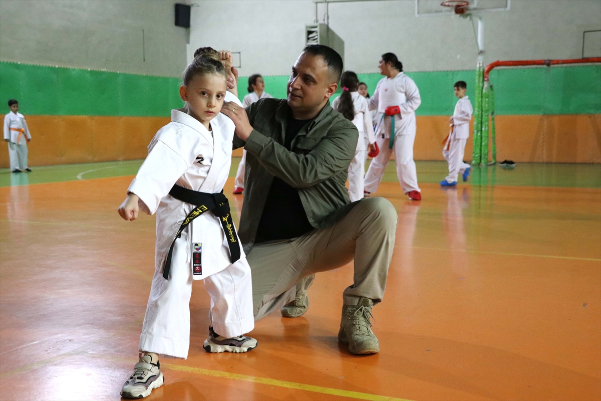 SUAT ÖZTÜRK – Elazığ İl Emniyet Müdürlüğünde görevli polis memuru ve Karate Milli Takımı Antrenörü Turgut Gürgöze, çocuk ve genç sporcuları ulusal ve uluslararası yarışmalara hazırlıyor. Babasının yönlendirmesiyle 8 yaşında karateye başlayan, ulusal ve uluslararası birçok organizasyonda derece elde eden Gürgöze, 2016 yılında Diyarbakır’daki Şehit Ali Gaffar Okkan Polis Meslek Eğitim Merkezi’ni kazanarak, polislik mesleğine adım attı. Mesleğinin yanı sıra karateyi bırakmayan Gürgöze, geçen yıl Karate Milli Takımı Antrenörlüğüne getirildi. Elazığ Emniyet Müdürlüğü Koruma Şube Müdürlüğünde görev yapan Gürgöze, mesai saatleri dışında dezavantajlı bölgelerdeki çocukları kötü alışkanlıklardan ve ekran bağımlılığından uzaklaştırmak amacıyla geçen yıl Gakgo Spor Kulübünü kurdu. Çalışmalarını Elazığ Anadolu İmam Hatip Lisesi Spor Salonu’nda sürdüren Gürgöze, gündüz polislik görevini yerine getirirken akşam saatlerinde ise geleceğin sporcularını yetiştiriyor. Yaklaşık 100 öğrencisi bulunan Gürgöze, verdiği eğitimle çocukları milli takıma kazandırmayı hedefliyor. – “Polislik, aynı zamanda geleceği korumaktır” Turgut Gürgöze, AA muhabirine, küçük yaşta spora yönelerek kötü alışkanlıklardan uzak kaldığını, 8 yaşında başladığı karatede ulusal ve uluslararası birçok derecesinin bulunduğunu söyledi. Polis olmaya 2016 yılında karar verdiğini belirten Gürgöze, polislik eğitim sürecinde de karate dersleri verdiğini anlattı. Gürgöze, “Diyarbakır Ali Gaffar Okkan Polis Meslek Eğitim Merkezi’nde öğrenci olarak başladım. Burada da boş zamanlarımda karate dersi verdim. Polislerimizin sahaya çıktıklarında kendilerini savunabilmeleri için bildiğim tüm yakın dövüş ve karate tekniklerini bu 4-5 aylık süreçte aktarmaya çalıştım.” ifadelerini kullandı. Göreve başladıktan sonra spor kulübü kurma hayalini gerçekleştirdiğini dile getiren Gürgöze, Elazığ’da kurduğu kulüple kısa sürede önemli başarılara imza attıklarını söyledi. Polislik görevinin yanı sıra boş zamanlarında verdiği eğitimle sporcu yetiştirdiğini ifade eden Gürgöze, şunları kaydetti: “Çocuklarımızı vatan ve bayrak sevgisi, disiplin ve saygı çerçevesinde yetiştirmeye çalışıyorum. Boş zamanlarımda dinlenmek yerine çocuklarla zaman geçirmeyi kendime ilke edindim. Bu yolda ilerlerken kendi geçmişimi göz önüne alıyorum. Bu yüzden çocukların hayatına dokunmak istiyorum. Amacımız sadece suçla mücadele etmek değil. Polislik, aynı zamanda geleceği korumaktır. Bu düşünceyle çocukların hayatına dokunmak istiyorum.” Bir yıl gibi kısa sürede çeşitli illerde düzenlenen organizasyonlarda çok sayıda madalya kazandıklarını aktaran Gürgöze, sporcularının önemli başarılar elde ettiğini belirtti. Gürgöze, “Gittiğimiz her organizasyondan madalyalarla döndük. 10 sporcumuzu milli takım gelişim kamplarına gönderdik. Hepsi kendilerini gösterme fırsatı buldu. Bu başarıları bir yıl içinde yaptık.” dedi. Ailelerin desteğinin önemli olduğunu vurgulayan Gürgöze, şöyle konuştu: “Aileler bize güvenerek çocuklarını gönderiyor. Polis olmam en önemli etkenlerden biri. Polislik, birçok insan için örnek alınan bir meslek. Bu sayede aileler bize güveniyor ve destek veriyor. Biz de bu güvenin karşılığını, başarı, saygı ve disiplinle çocuklara bunları aşılayarak vermeye çalışıyoruz. Elimizden geldiğince çocuklarımızı destekliyor, müsabakalara götürüyoruz.” – “Ailemi ve hocamı gururlandırmak istiyorum” Sporculardan 12 yaşındaki Yaren Betül Yılmaz, antrenörü Turgut Gürgöze sayesinde öz güven kazandırdığını belirtti. Yaren Betül, “Antrenmanlarda hem teknik öğreniyoruz hem de kendimizi geliştirme fırsatı buluyoruz. Kısa sürede Türkiye üçüncüsü oldum.” dedi. 11 yaşındaki Metehan Aydın ise yaklaşık 9 aydır karate eğitimi aldığını söyledi. Antrenörlerinden akşamları ve hafta sonu eğitim aldığını belirten Metehan, “Eskiden zamanımı boşa geçiriyordum. Şimdi hedefim Avrupa şampiyonu olmak ve milli takıma girmek. Ailemi ve hocamı gururlandırmak istiyorum.” diye konuştu. Elisa Meva Şık (6) da karateyi çok sevdiğini aktararak, “Üç yıldır karate yapıyorum. Hedefim dünya şampiyonu olmak. Sürekli antrenman yapıyorum ve kendimi korumayı öğreniyorum.” ifadelerini kullandı.