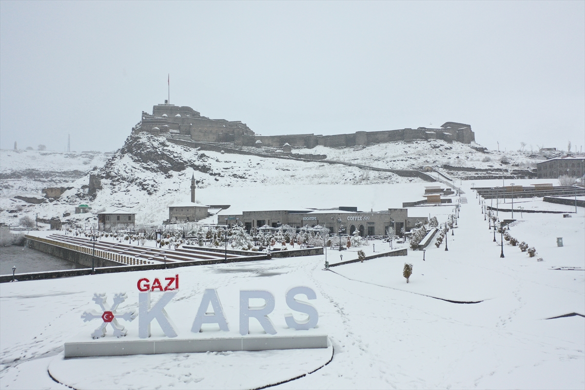 Kars’ta nisan ayında yoğun kar yağışı etkili oldu. Kentte dün başlayan ve aralıklarla devam eden kar kenti yeniden beyaza bürüdü. Kar yağışının etkisini sürdürdüğü şehirde, Kars Kalesi ve tarihi yapılar beyaz örtüsüyle güzel görüntü oluşturdu. Karla kaplı Kars dronla görüntülendi.