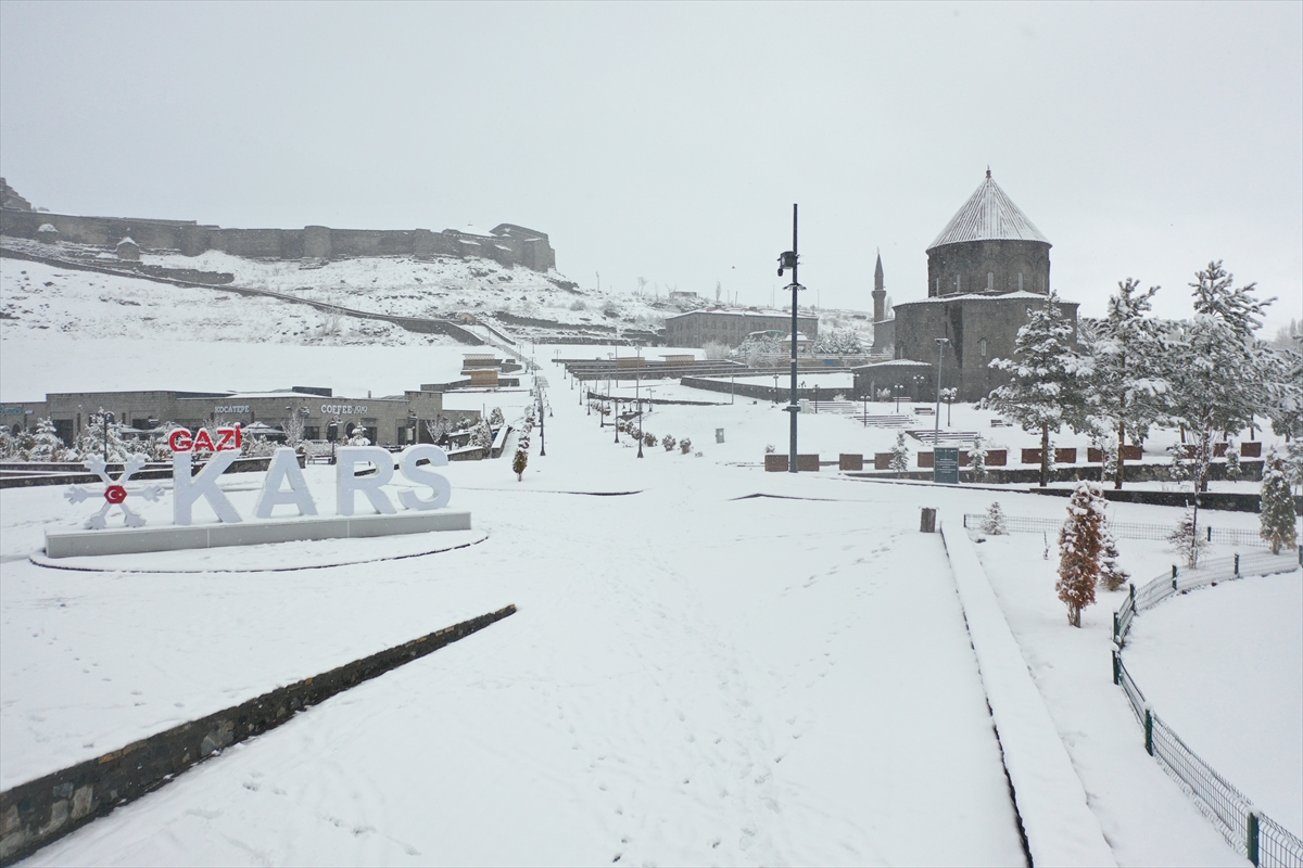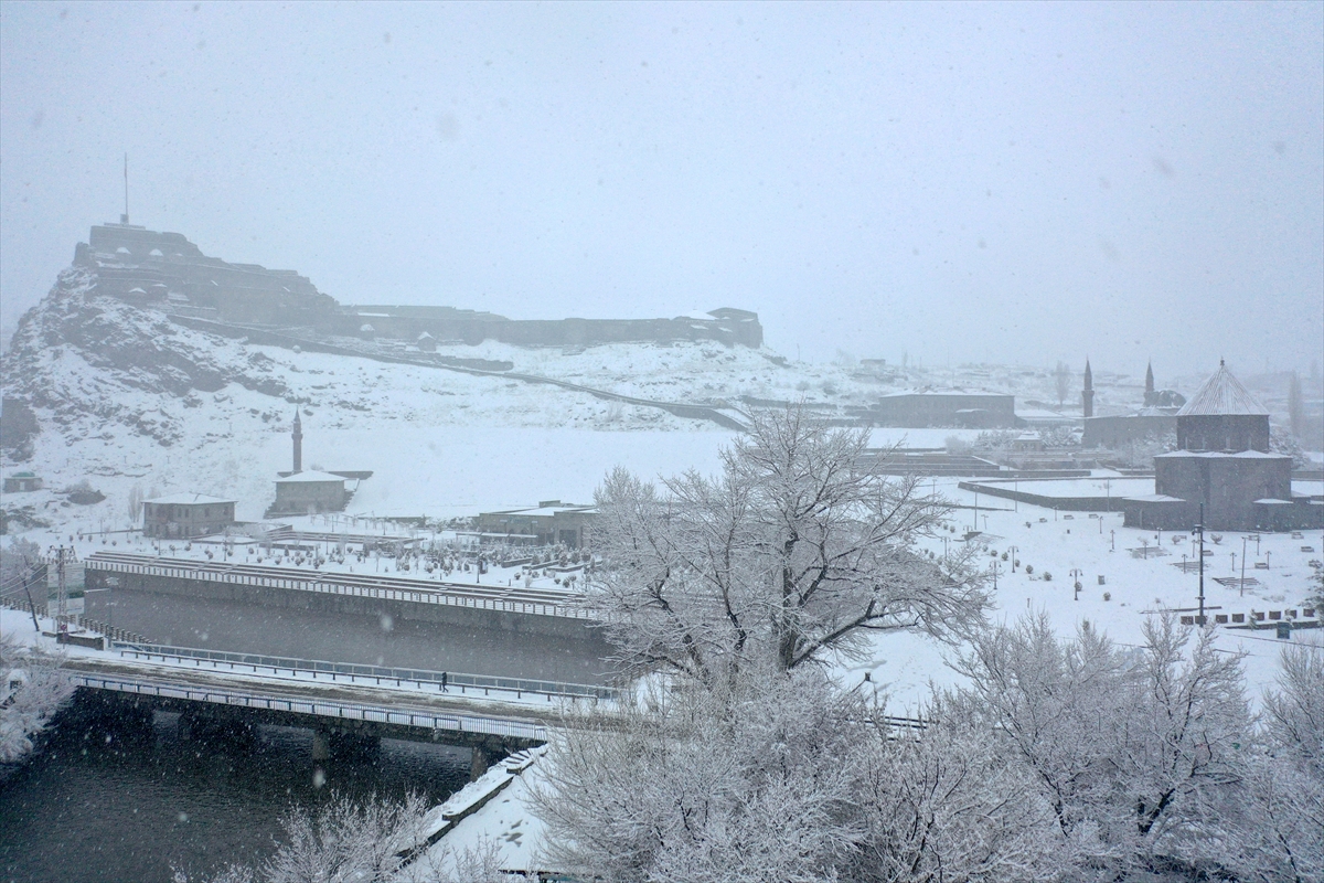 Kars nisanda etkili olan yoğun kar yağışıyla beyaza büründü