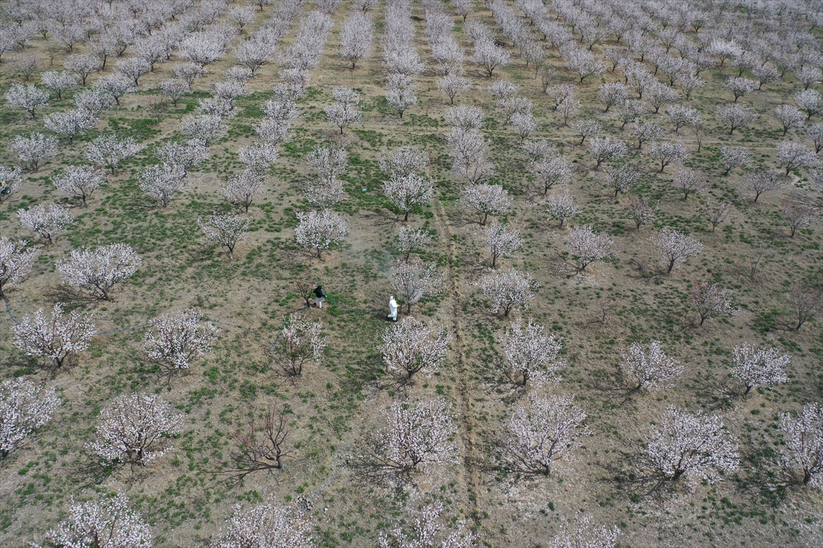 Kars’ın Kağızman ilçesinde ilkbaharda açan çiçeklerle görsel güzellik sunan kayısı bahçelerinde üreticiler, ürünlerini hastalıktan korumak için ilaçlama mesaisine başladı. İriliği ve lezzeti bakımından Türkiye’de yetiştirilen ender kayısı türlerinden olan ve ihraç edilen Kağızman kayısısının bulunduğu bahçelerde beyaza bürünen ağaçlar güzel görüntü oluşturdu. İl Tarım ve Orman Müdürlüğü verilerine göre yaklaşık 1 milyon kayısı ağacının bulunduğu şehirde, üreticiler bir yandan don riskine, bir yandan da hastalıklara karşı ağaçlarını korumaya çalışıyor.