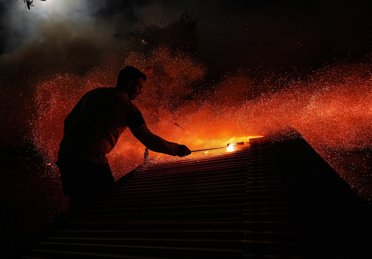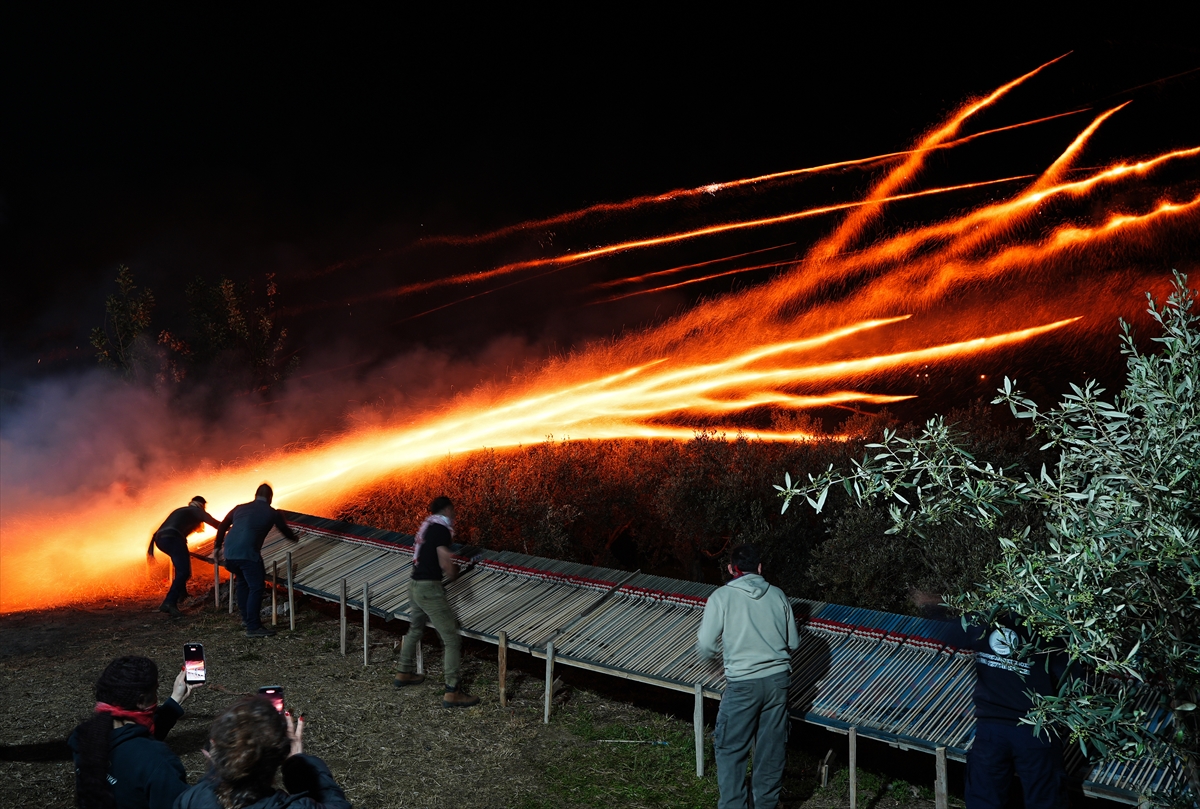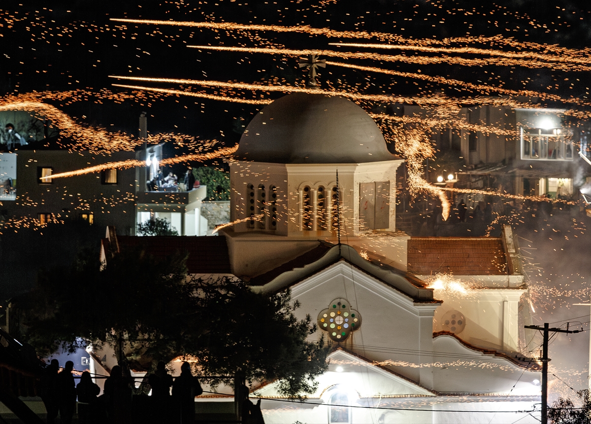 Hristiyan inancına göre Hazreti İsa’nın ölümünün ardından yeniden dirildiğine inanılan Paskalya Bayramı, Yunanistan’ın Sakız Adası’nda, yüzyıldan fazla zamandır kendilerine özgü yapılan “roket savaşı” geleneğiyle kutlanıyor. Hristiyanların en eski ve en önemli bayramı olarak kabul edilen gecede, adanın Vrondados bölgesindeki Ayios Markos (Saint Marc) ve Panagia Erithiani kiliselerinin cemaatleri, gelenek gereği el yapımı roketleriyle diğer kilisenin çan kulelerini vurmaya çalıştı. Yapımına aylar öncesinden başlanan, bir tür havai fişek olan el yapımı roketlerin kullanıldığı “savaş” gününde, ilk olarak farklı noktalardaki rampalara yerleştirilen roketler, güneşin batmasıyla bir anda ateşlendi. İki kilisenin cemaatinin aralarında yaklaşık 400 metre mesafe bulunan rakip kilisenin çan kulesini vurmayı hedeflediği savaşta, art arda ateşlenen çok sayıda roket, gökyüzünü aydınlatarak geceyi gündüze çevirdi. Hedefe ulaşan roketlerin oluşturduğu görsel şölen, Vrondados semtinin üst bölümündeki Epos Dağı’nın eteklerinde etkinliği izleyen kalabalığa coşkulu anlar yaşattı.