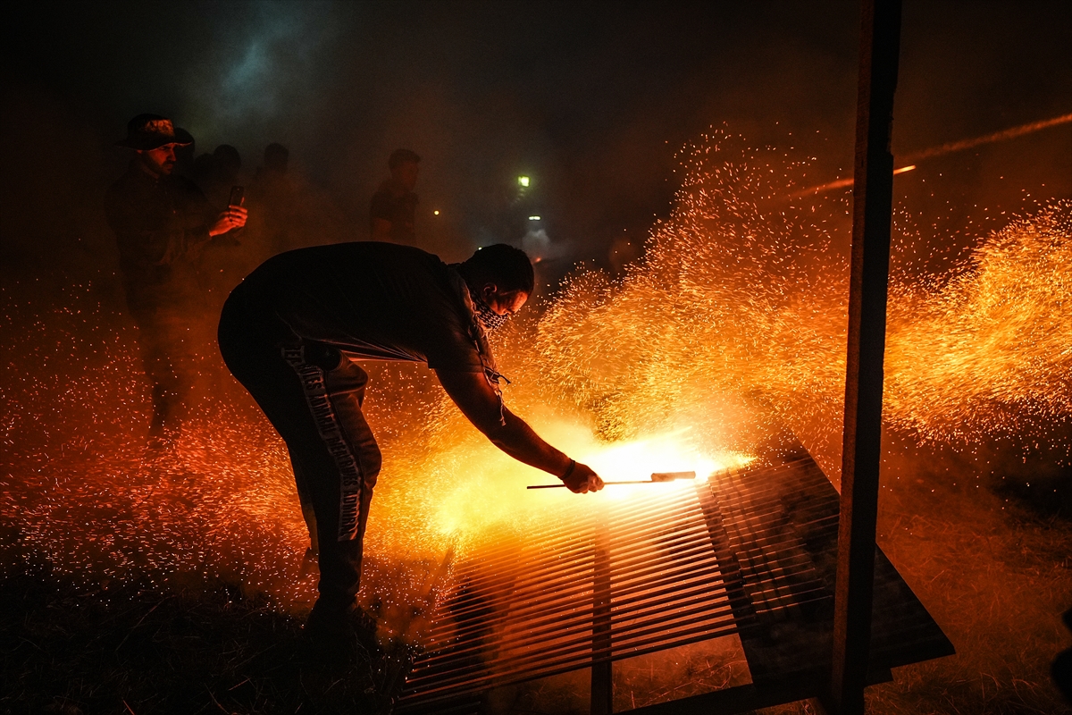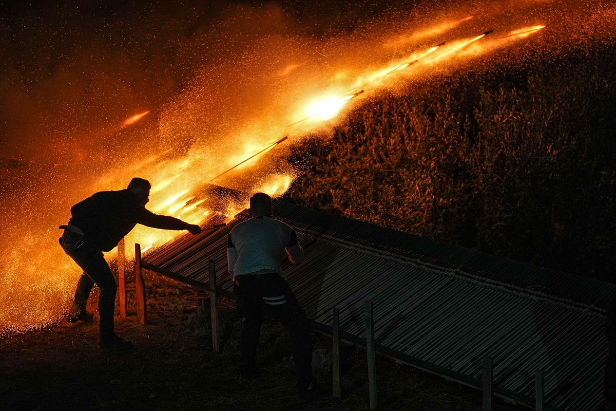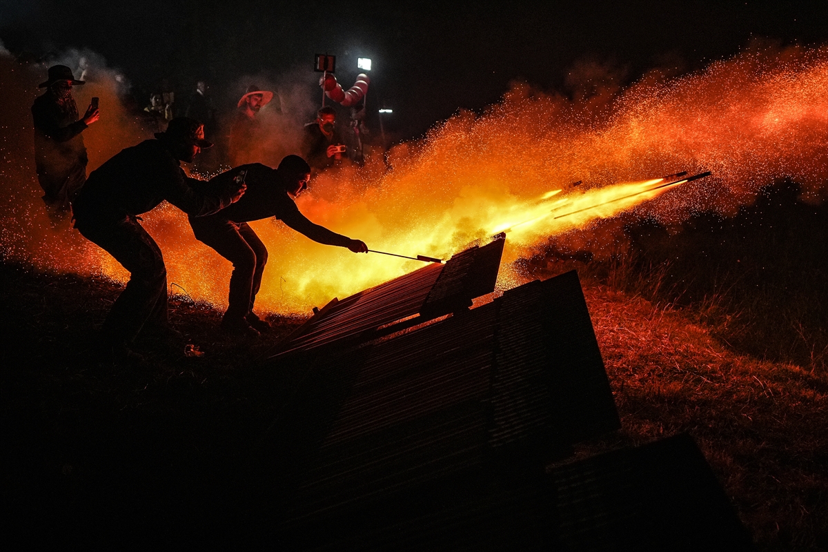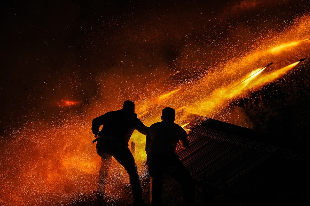 Hristiyan inancına göre Hazreti İsa’nın ölümünün ardından yeniden dirildiğine inanılan Paskalya Bayramı, Yunanistan’ın Sakız Adası’nda, yüzyıldan fazla zamandır kendilerine özgü yapılan “roket savaşı” geleneğiyle kutlanıyor. Hristiyanların en eski ve en önemli bayramı olarak kabul edilen gecede, adanın Vrondados bölgesindeki Ayios Markos (Saint Marc) ve Panagia Erithiani kiliselerinin cemaatleri, gelenek gereği el yapımı roketleriyle diğer kilisenin çan kulelerini vurmaya çalıştı. Yapımına aylar öncesinden başlanan, bir tür havai fişek olan el yapımı roketlerin kullanıldığı “savaş” gününde, ilk olarak farklı noktalardaki rampalara yerleştirilen roketler, güneşin batmasıyla bir anda ateşlendi. İki kilisenin cemaatinin aralarında yaklaşık 400 metre mesafe bulunan rakip kilisenin çan kulesini vurmayı hedeflediği savaşta, art arda ateşlenen çok sayıda roket, gökyüzünü aydınlatarak geceyi gündüze çevirdi. Hedefe ulaşan roketlerin oluşturduğu görsel şölen, Vrondados semtinin üst bölümündeki Epos Dağı’nın eteklerinde etkinliği izleyen kalabalığa coşkulu anlar yaşattı.