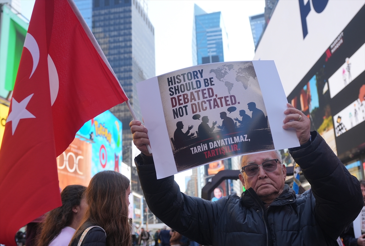 Türk-Amerikan toplumu, New York Belediye Başkanı Zohran Mamdani’nin 1915 olaylarına ilişkin paylaşımına tepki gösterdi. New York’un Times Meydanı’nda birçok Türk derneğinin destek verdiği eylemde, Mamdani’nin 24 Nisan’da ABD merkezli X şirketinin sosyal medya platformundaki hesabından yaptığı paylaşım protesto edildi.