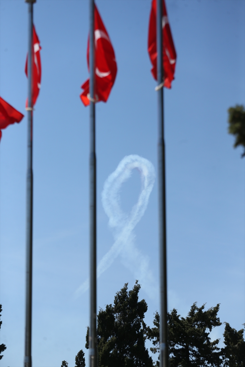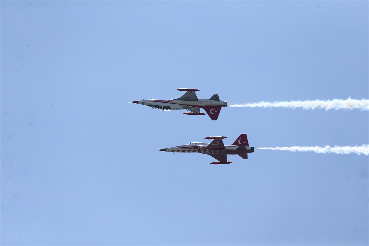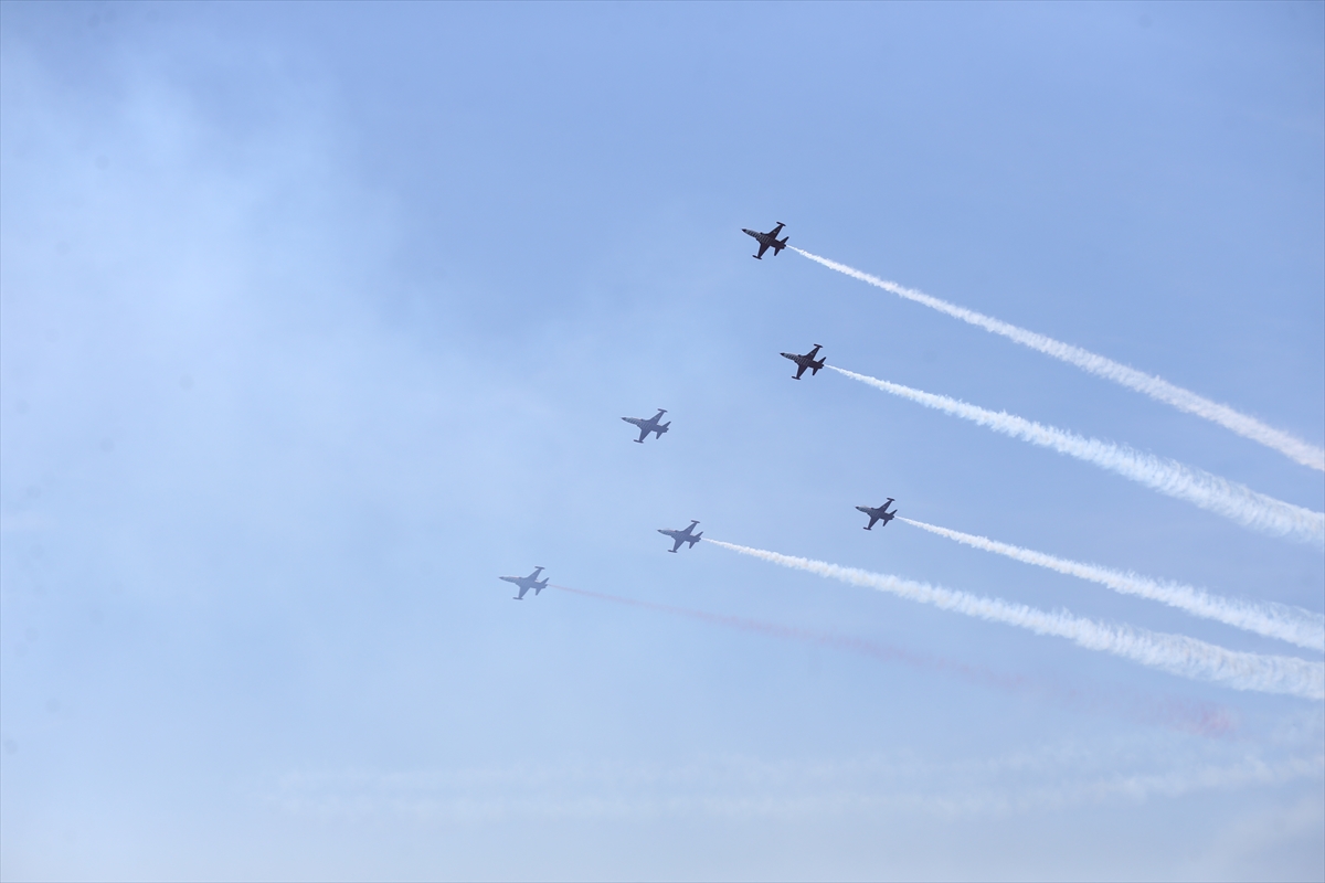 Türk Hava Kuvvetlerinin akrobasi timi Türk Yıldızları, Çanakkale Kara Savaşları'nın 111. yıl dönümü etkinlikleri kapsamında Tarihi Gelibolu Yarımadası'nda gösteri uçuşu gerçekleştirdi.