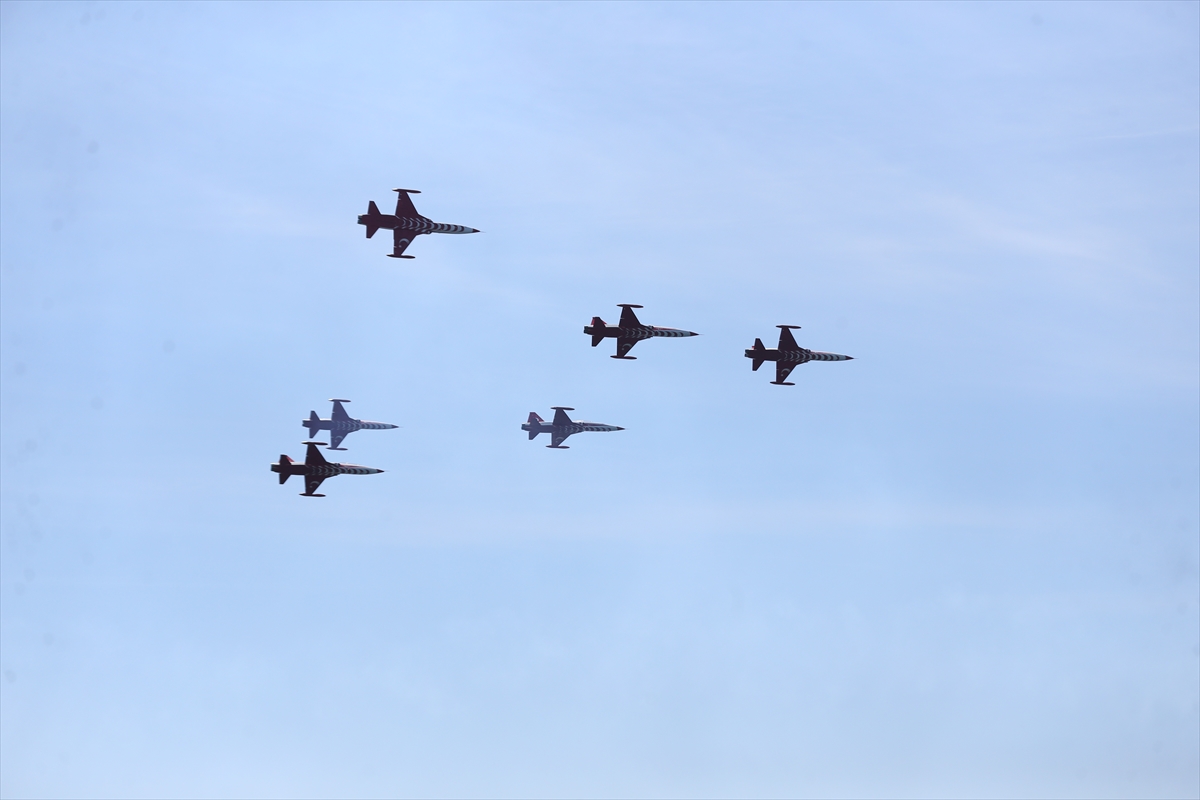 Türk Hava Kuvvetlerinin akrobasi timi Türk Yıldızları, Çanakkale Kara Savaşları’nın 111. yıl dönümü etkinlikleri kapsamında Tarihi Gelibolu Yarımadası’nda gösteri uçuşu gerçekleştirdi.